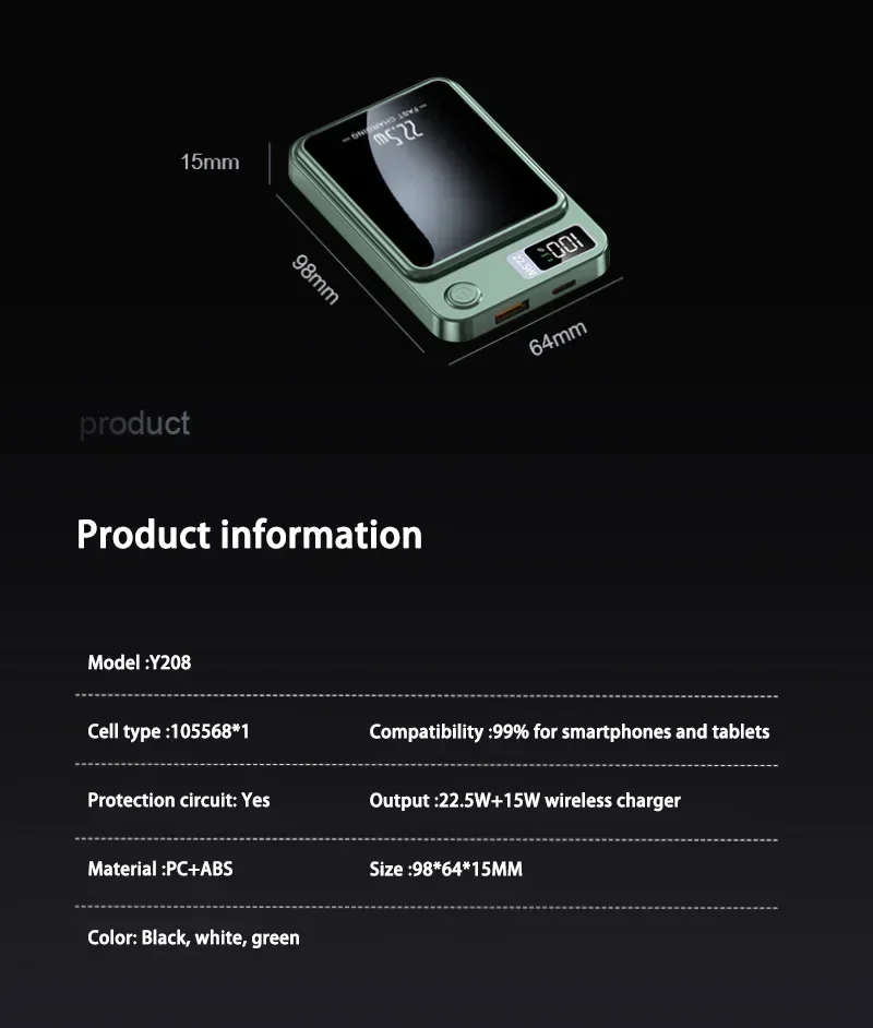 Support wireless fast charging, With digital display,suitable for all smartphones