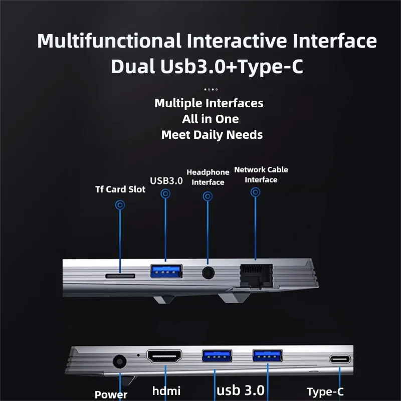 USB 3.0 * 3; 3.5mm headphone jack; TF card slot; HDMI; DC; RJ-45;TYPE-C Full Function * 1