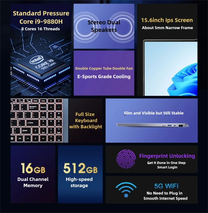 15.6″ intel core i7-9750h gaming laptops portable notbook computer pc 32GB DDR4 512GB IPS WiFi Backlight Fingerprint Unlock